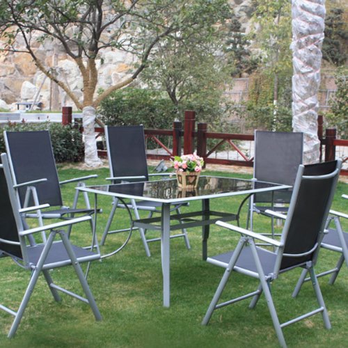 ALU SITZGARNITUR GARTENMÖBEL GARNITUR SITZGRUPPE 7-teilig Silber/Schwarz