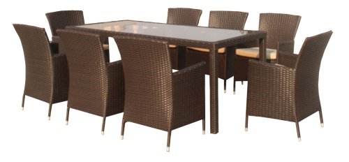 Ambientehome 63891 Sitzgruppe Essgruppe Lubango 9-teilig Gartenmoebel Polyrattan, mocca braun