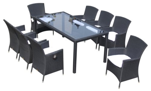 Ambientehome 63893 Sitzgruppe Essgruppe Lubango 9-teilig Gartenmoebel Polyrattan, schwarz