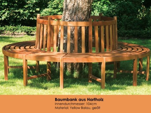 Diese exklusive Baumbank wurde aus Yellow Balau, einem tropischen Hartholz gefertigt. Der Festigkeitswert von Yellow Balau liegt um 50% höher als bei Eiche. Durch die besondere Härte des Holzes ist die Bank sehr wetterbeständig und gleichzeitig auch äußerst stabil.