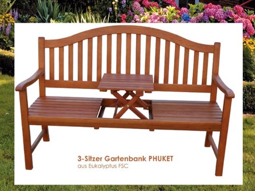 Gartenbank PHUKET 3-Sitzer mit Tisch Sitzbank Bank Eukalyptus FSC Hartholz