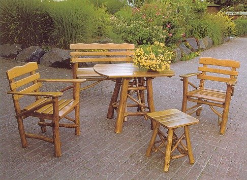 Knüppelholz - Gartengarnitur Mosel, 4-teilig, Eiche + Buche