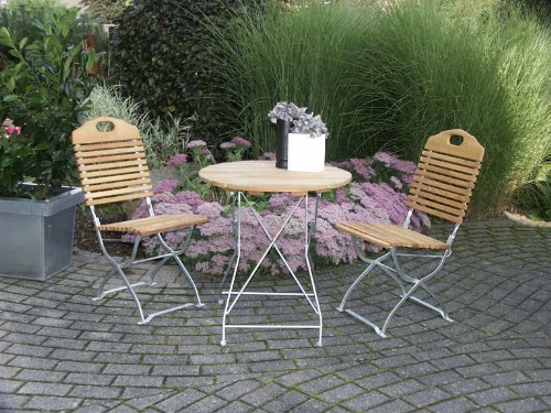BAD TÖLZ: Klappgarnitur 3-teilig, Stahl blank verzinkt + Robinie