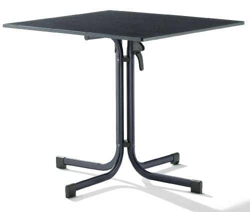 1330-55 Features: -Farbe: Eisengrau / Anthrazit. -Ausführung (Tischplatte): Schieferoptik. -Gestell aus Stahlrohr. -Modernes Design. -Melaminbeschichtete Puroplan-Tischplatte - hitze-, kältebeständig, wetter-, glut-, schlag- und kratzfest. -Randlose Tischplattenkante bietet eine optimierte Nutzfläche. -Maße: 80cm B x 80cm T.