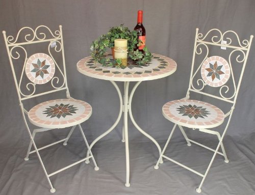 Tisch mit 2 Stühle Set "Merano" Weiß HX11-301-2 aus Metall Mosaik Gartengarnitur